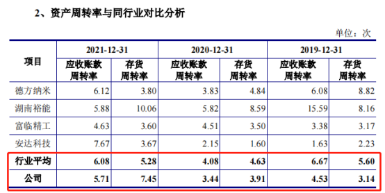 对于之前较行业水平低的原因,万润新能解释称,主要系2019年和2020年公司营业收入下滑且同行业可比公司业务规模相对较大,并与公司客户结构以及回款周期存在一定的差异。