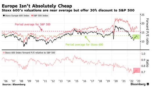 从估值方面看,欧洲股票仍处于有利地位。欧洲斯托克600指数的市盈率约为17倍,比标普500指数低近三分之但对于大多数策略师来说,这还不足以证明股市上涨是合理的。
