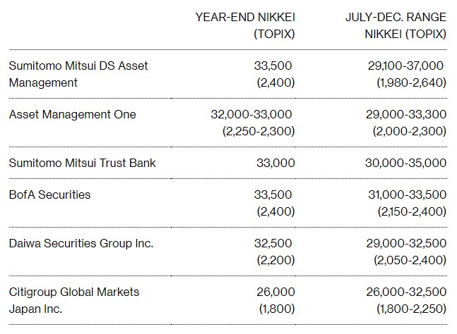 本平台获悉,今年领先于世界其他主要基准股指的日本股市涨势可能会放缓。彭博对六名受访者的调查中值预测显示,到年底,日经225指数将从目前的水平上涨约1%,达到32750点。虽然这将使该日经指数升至1990年7月以来的最高水平,但与该指数今年迄今24%的涨幅相比,预期涨幅并不大。