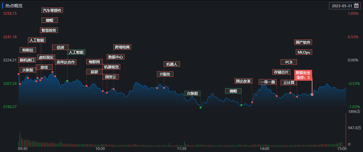 6月1日,A股三大指数经历低开冲高震荡过程后集体收红,创业板指最强,沪指最弱,仍然收于年线之下,3200点成为反复拉扯的点位。截至收盘,上证指数涨0.07%报32063点;深证成指涨0.39%报108390点,创业板指涨0.59%报22043点,A股合计成交额98896亿元,较前一交易日增长09%;北向资金全天净卖出102亿元;其中沪股通净卖出307亿元,深股通净买入105亿元。今日A股涨多跌少,有2632只上涨,2328只下跌。