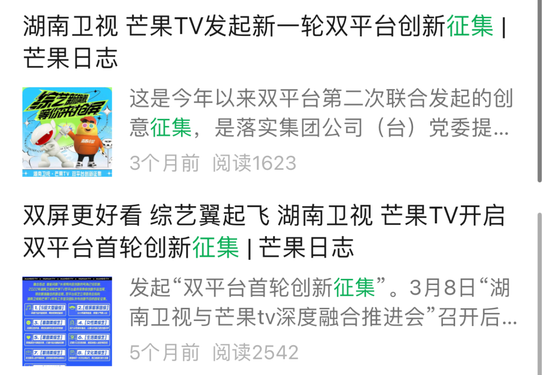 为此,行业各平台迎难而上,开始基于B端开发视角思考综艺创制新路,前段抖音的《百川综艺季》便是其中一例。而双芒作为“不创新,毋宁死”精神的长期贯彻者,从初步整合的去年到走向正轨的今年,已经7次公开征集创新综艺方案,足见其对内容创意灵活度的看重。